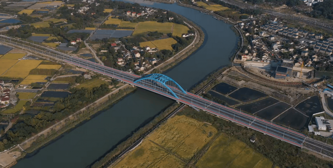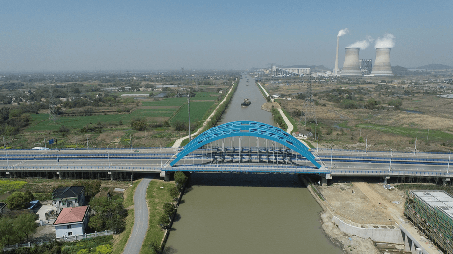 本项目为城市主干道路,全长2.02公里。跨长湖申航线设主桥,为单孔85米钢箱拱肋系杆拱桥,引桥为30米跨小箱梁形式,桥梁全长530.4米。本项目在湖州首次采用景观性钢箱作拱肋,造型新颖、美观,丰富了城市的桥型景观。