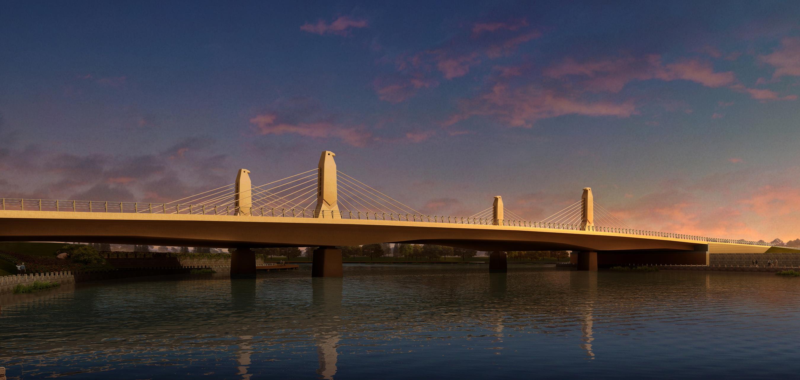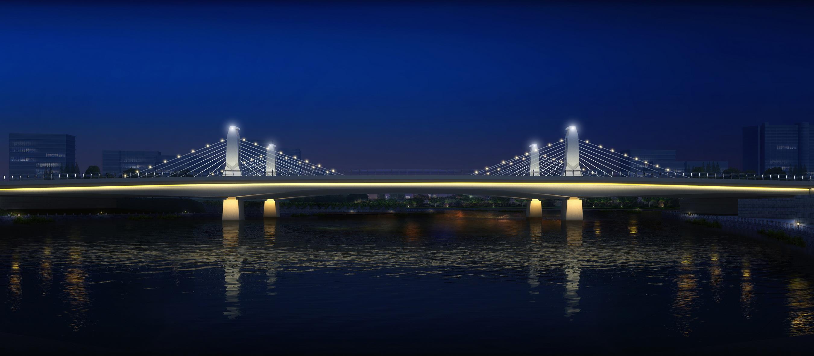 本项目为大型桥梁,该桥为矮塔斜拉桥,主梁采用变截面混凝土连续箱梁,桥塔从轮台的古名布古尔(维吾尔语“雕鹰”之意)获取灵感,以雕鹰造型承载轮台三千多年的沧桑历史。