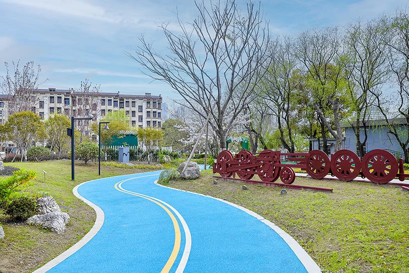 本项目位于杭州市临平区,西起迎宾路,东至临东路,涉铁段绿道从迎宾路一直延伸至龙兴公园,全段毗邻沪杭铁路,途径南大街、临平实验小学、临平农村商业银行以及周边小区。为充分展现沪昆铁路沪杭段的历史变迁及其对临平城市发展所带来的影响,本次改造工程采用沿铁路两侧建设绿道,将铁路元素融入其中,塑造出独一无二的铁路绿道景观,形成了绿道与区域景观串联、互动的独特韵味。
